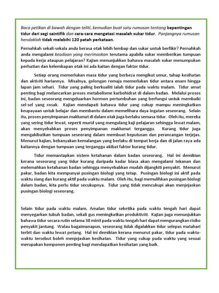 Latihan Rumusan Spm Kssm Kepentingan Tidur