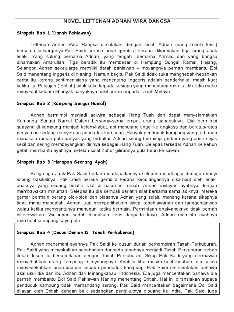 Sinopsis Novel Left Adnan Bab Sinopsis Novel Leftenan Adnan Wira Bangsa Ikut Bab Sinopsis Novel Studocu